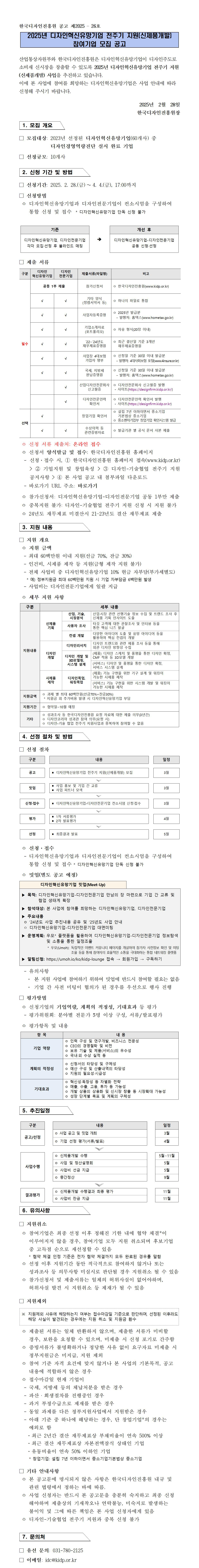 2025년 디자인혁신유망기업 전주기 지원(신제품개발) 참여기업 모집 공고