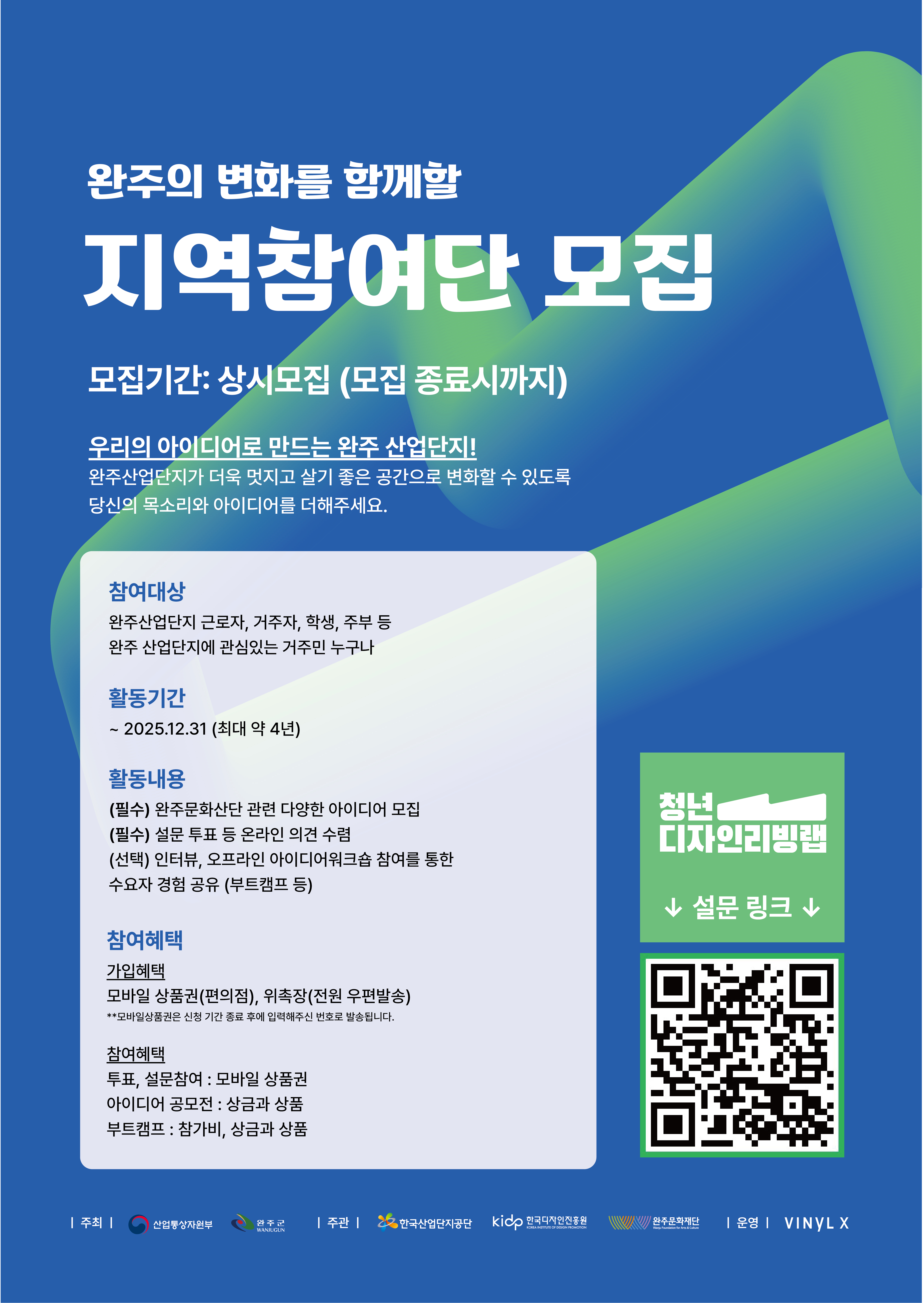 (완주산단) 문화선도산단 청년디자인리빙랩 지역참여단 모집 (상시모집)